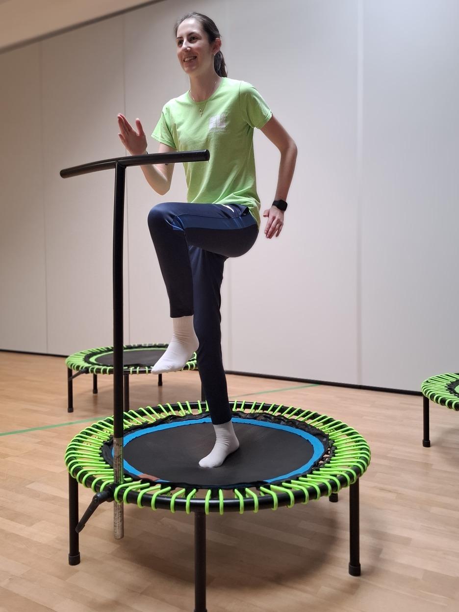 Bellicon® Jumping ist ein dynamisches Ganzkörpertraining auf dem Mini-Trampolin. Zu motivierender Musik wechseln sich schnelle und langsame Sprünge mit Aerobic-Schritten und Kraftübungen ab. Ein effektives Workout, das Ausdauer, Kraft und Koordination trainiert und dabei richtig Spaß macht.