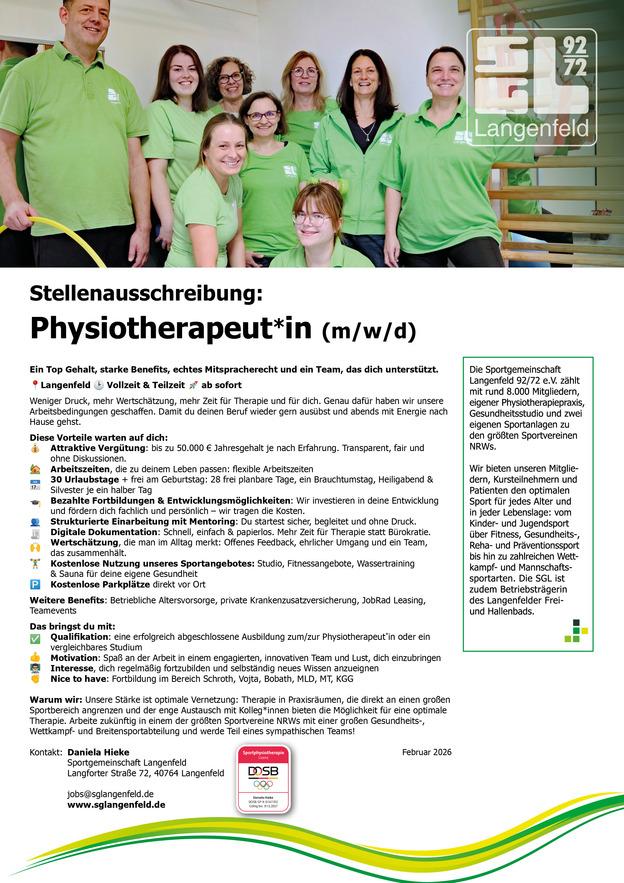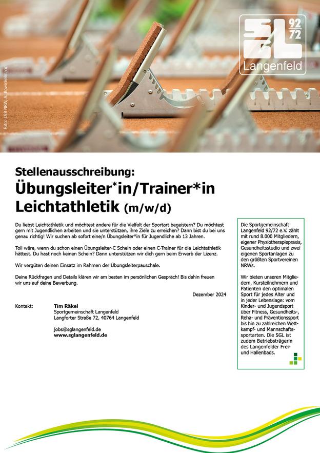 Die Sportgemeinschaft Langenfeld 92/72 e.V. zählt mit rund 8.000 Mitgliedern, eigener Physiotherapiepraxis, Gesundheitsstudio und zwei eigenen Sportanlagen zu den größten Sportvereinen NRWs.
