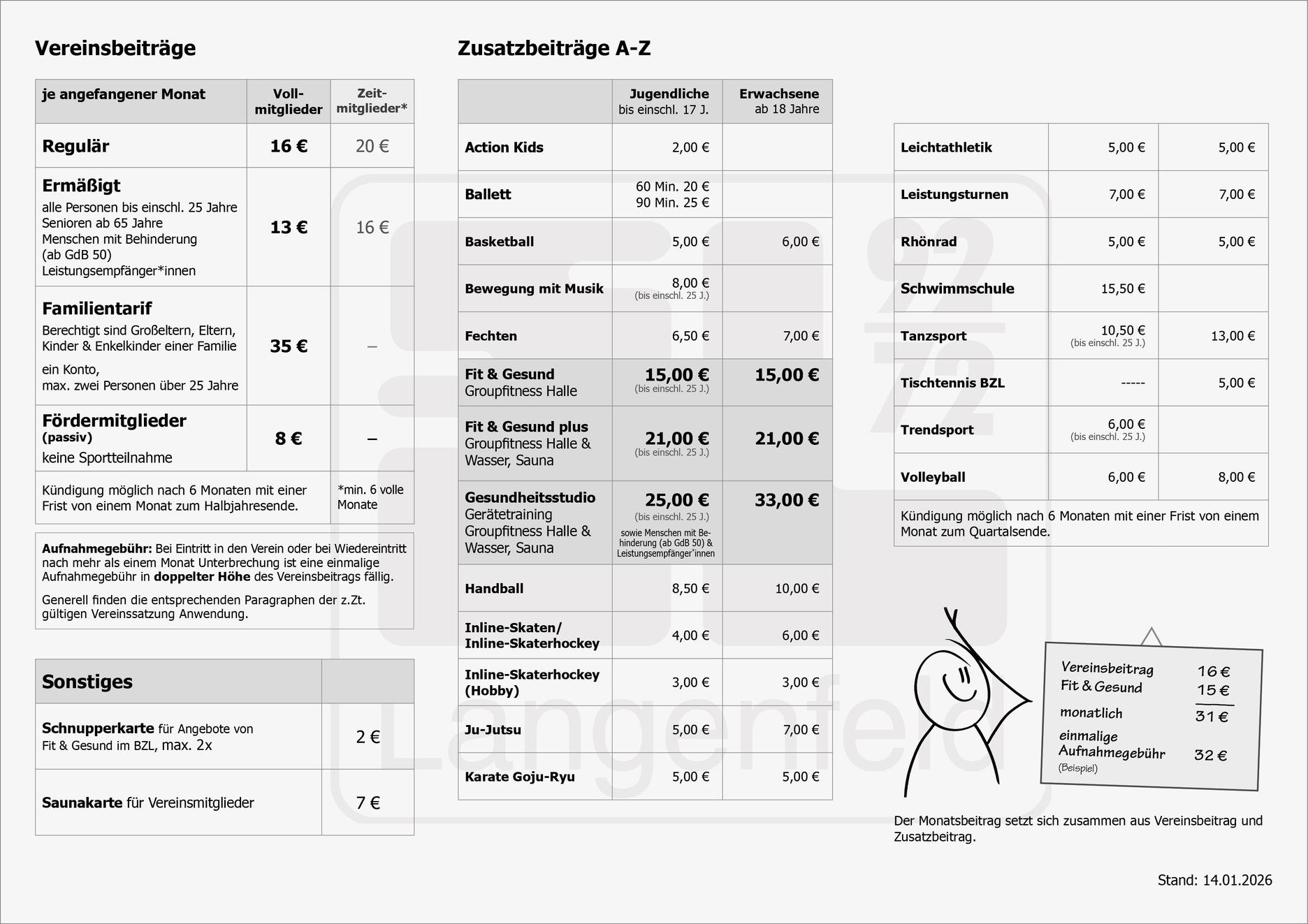 Gesundheitsstudio / Studio - Beiträge und Gebühren