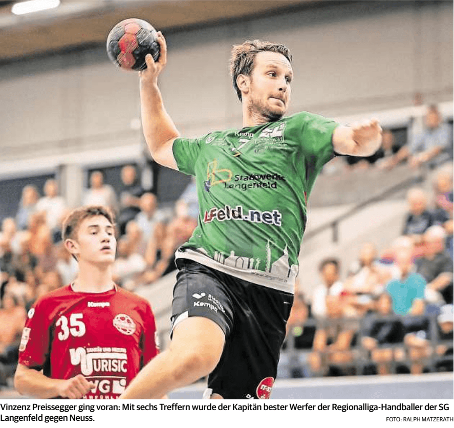 Erfolgreicher hätte der Jahresauftakt für die Handballer der SG Langenfeld (SGL) nicht laufen können: Am Freitag erst gewann Rückraumspieler Gary Hines sein erstes Spiel bei der Weltmeisterschaft in Polen und Schweden mit der US-amerikanischen Nationalmannschaft gegen Marokko, am Samstag zahlten sich Hines‘ gedrückte Daumen auch für seine Teamkollegen in der Regionalliga Nordrhein aus: Die SGL siegte beim Neusser HV mit 25:23 (9:11) und startete so mit dem erhofften Erfolgserlebnis ins Kalenderjahr 2023. „Die Drucksituation war für uns sehr groß“, sagte Langenfelds Trainer Christian Paul. „Umso mehr freut es mich, dass wir so positiv gestartet sind.“