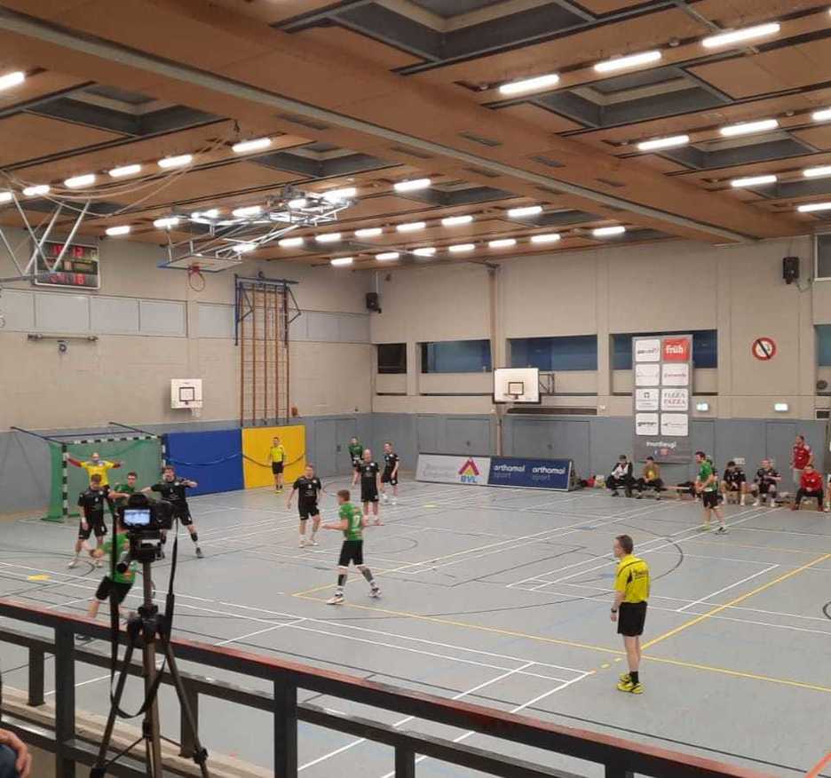 Trotz dieser wilden Zusammenstellung des Teams konnte die Mannschaft gegen den Tabellenvierten der Verbandsliga aus Ratingen das Spiel in der ersten Halbzeit ausgeglichen gestalten. Auch trotz einiger taktischer Anpassung in der Halbzeit konnte sich keine der beiden Mannschaften zu Beginn der zweiten Halbzeit signifikant absetzen, bis die Hausherren in der 42 Minute durch einen 3-Tore-Laufe das erste Mal mit 4 Toren davonziehen. Diese Führung ließ die SGL sich nicht mehr nehmen und schaffte es sogar in den folgenden 10 Minuten den Vorsprung auf bis zu 8 Tore auszubauen. Bis 4 Minuten vor Schluss konnte der große Vorsprung gehalten werden, bevor man am Ende doch merkte, dass den Hauptakteuren die 60 Minuten vom Dienstag immer noch in den Knochen steckten. So gewann man am Ende zwar „nur noch“ mit 5 Toren Vorsprung (33:28), aber die zwei Punkte, auf die es ankam, haben die Jungs dank Unterstützung des gesamten Vereins souverän eingesackt.