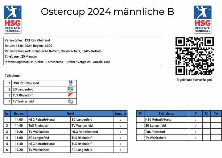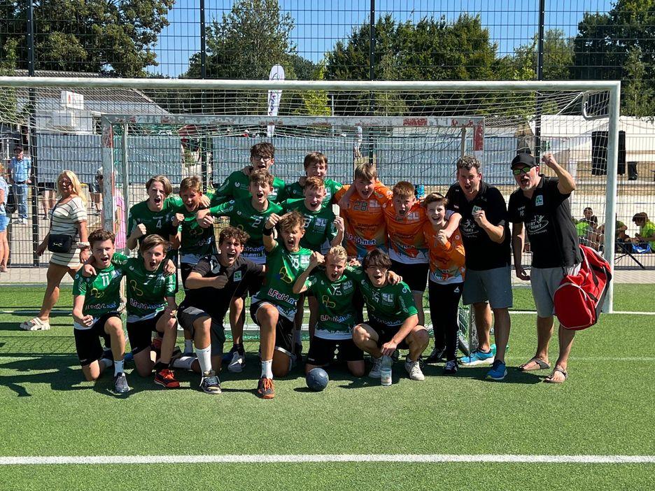 In Gruppe D trafen wir auf die HSG Duisburg Süd (14:4), auf die a.K. Mannschaft der Turnerschaft Grefrath 1896 e.V. (7:4) und zum Abschluss auf die HSG Eagles Niederrhein Jugend (11:0).