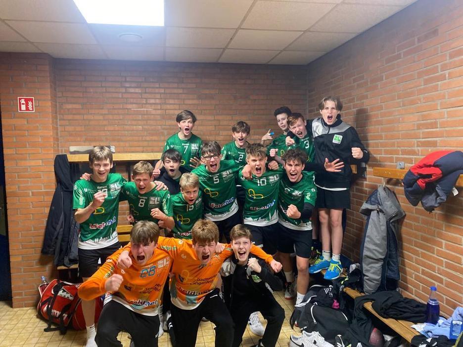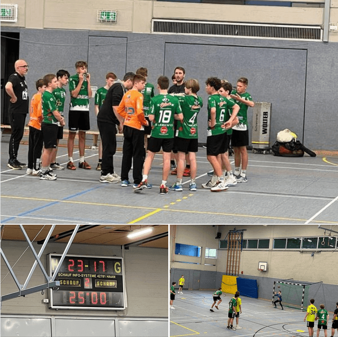 Doch dieses Mal fingen wir uns, die Abwehr rührte Beton an. Nils, der heute wieder eine gute Leistung ablieferte, hielt, was aufs Tor kam und vorne machten Finn W. und 2x Elias den Deckel drauf. 30:27 war der verdiente Endstand. Am Samstag besuchen uns Jungs aus Haan -die Punkte sollen in Langenfeld bleiben, Anwurf 13 Uhr.