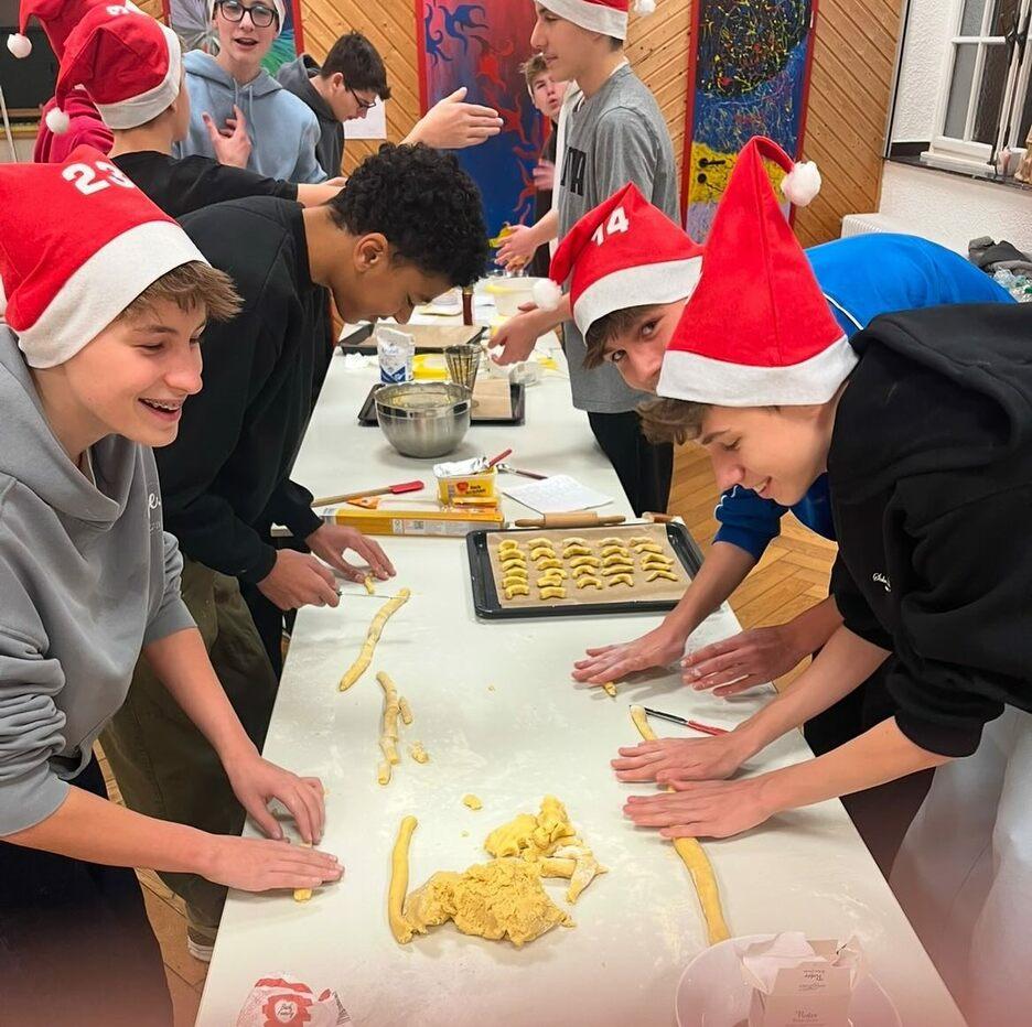 In der ersten Hälfte des Abends stand das Plätzchenbacken auf dem Programm. Die Jungs zeigten nicht nur ihr sportliches Talent, sondern auch ihre kreativen Kochkünste. Mit viel Begeisterung und Teamarbeit wurden verschiedene Plätzchenrezepte ausprobiert. Der Duft von frisch gebackenem Gebäck erfüllte den Raum und sorgte für eine gemütliche Atmosphäre. Am Ende konnten alle stolz ihre selbstgemachten Leckereien präsentieren und natürlich auch mit dem selbstgemachten Kinderpunch probieren!