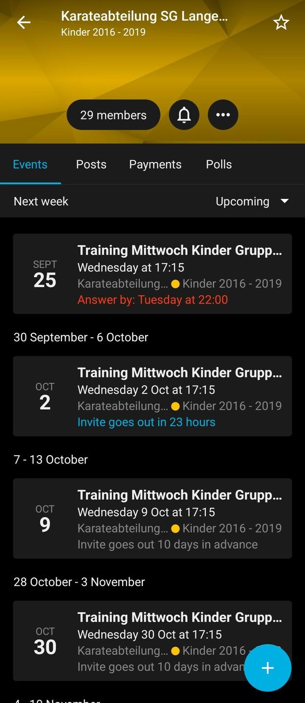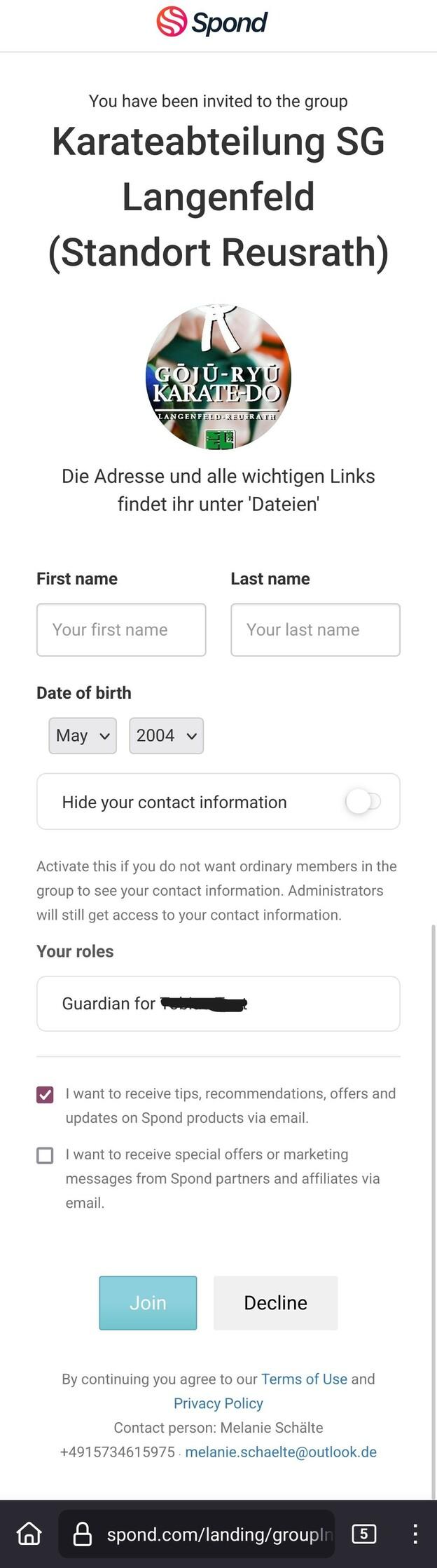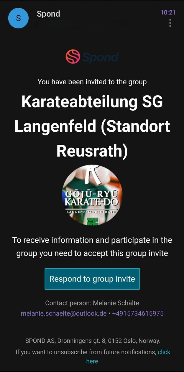 Da Spond in erster Linie von der Kindergruppe in Reusrath und der Turniergruppe verwendet wird, passiert dies automatisch sobald du dein Kind für ein Schnuppertraining in Reusrath anmeldest oder wenn dein Kind Interesse an Turnieren und dem dazugehörigen Turniertraining bekundet.