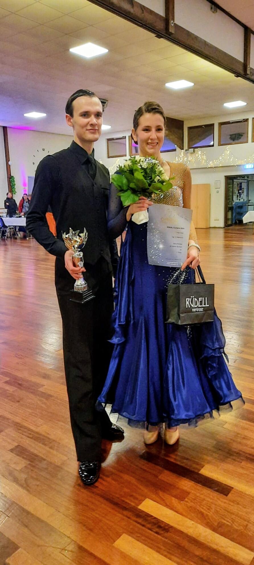 Unser junges erfolgreiches Standard Paar Mara Plümpe und Quentin Bücken haben heute sehr erfolgreich ihr erstes D Latein Turnier getanzt und auf Anhieb den 3. PLATZ von 15 gestarteten Paaren belegt. Der stolze Trainer Mario Schiena ist sehr zufrieden mit dem Ergebnis!