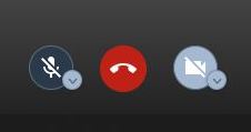 Diese drei Schaltflächen befinden sich immer im unteren Bereich deines Bildschirms, wenn du unsere Live Streams nutzt. Mikrofon an/aus, Teilnahme komplett beenden (roter Hörer), Kamera an/aus.