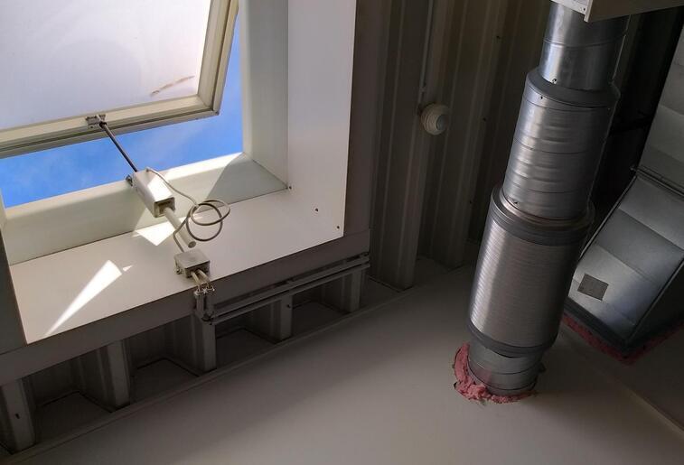 Und hinter den Kulissen? Läuft´s! In den nun freien Umkleiden sind unsere Handwerker emsig mit Lüftung und Trockenbau beschäftigt. Die neuen Rohre und Bauteile für die Lüftung liegen, nun werden die Löcher ringsrum "gestopft". Sobald diese Arbeiten unter der Decke abgeschlossen sind, geht es am Boden weiter. Wenn dieser liegt und begehbar ist, öffnen wir den Durchgang der neuen Damenumkleide zum Bad.