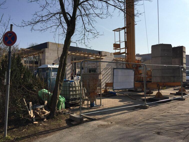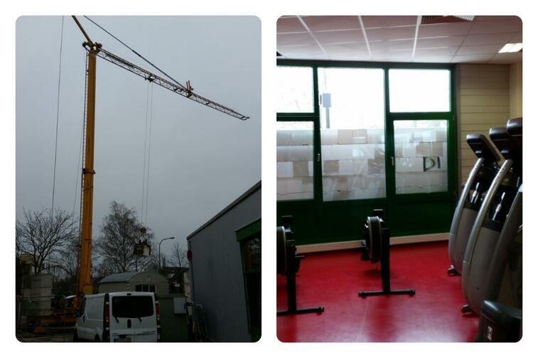 Tja, das ist die Kehrseite der Medaille: die neue Mauer wächst - leider auch vor dem "alten" Kardioraum in die Höhe... Unsere Studiomitglieder tragen es mit Fassung - schließlich gibt es noch ein paar unverbaute Fenster. Und draußen? Steht jetzt ein Kran - in den nächsten Wochen geht es hoch hinaus!