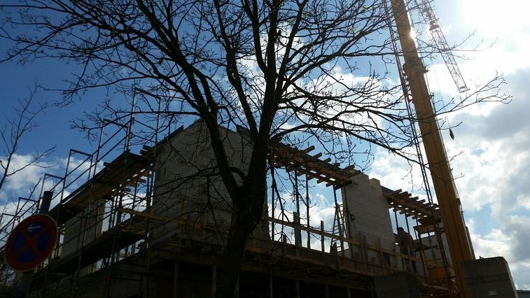 Auch die zweite Etage ist inzwischen ringsum hochgemauert! Noch ist durch die Fenster der Himmel zu sehen, aber das wird sich in absehbarer Zeit ändern. Inzwischen wird bereits an der Dachkonstruktion gearbeitet, aber aufgrund des wenig fotogenen Wetters gibt es ein Foto von gestern ;-) Nächste Woche werden wir mal um eine Begehung bitten und Ein- oder Ausblicke aus dem neuen Studio bieten. Bis dahin: ein schönes Wochenende - die (Wetter-)Aussichten sind ja ganz gut!