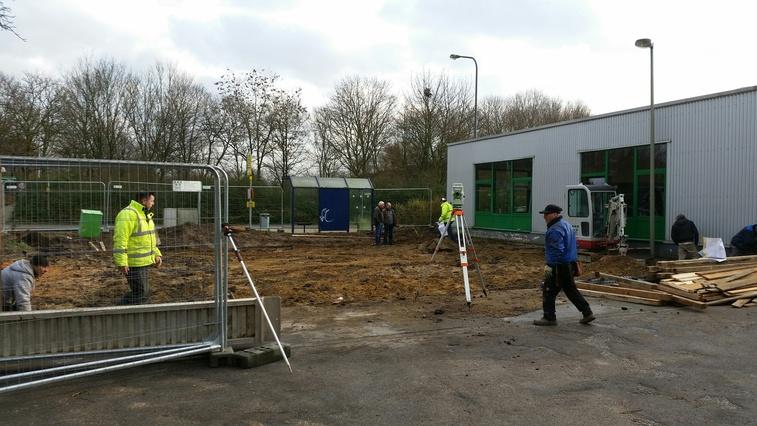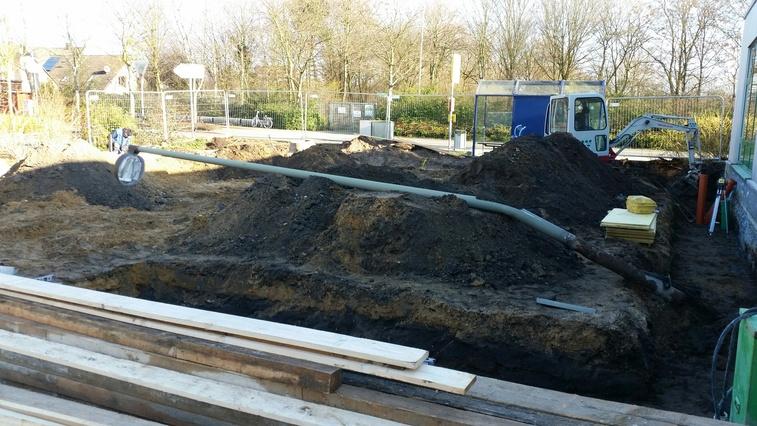 Ha! Hat sich das Vorlesen etlicher Baustellenbücher doch gelohnt: fachmännisch das Schnurgerüst als solches erkannt! :-) Bei schönstem Sonnenschein bereiten die Bauarbeiter heute alles Weitere für die Errichtung der Grundmauern vor - das sieht nicht nur nach was aus, sondern lässt auch erahnen, wie viel Platz durch unseren Anbau gewonnen wird.