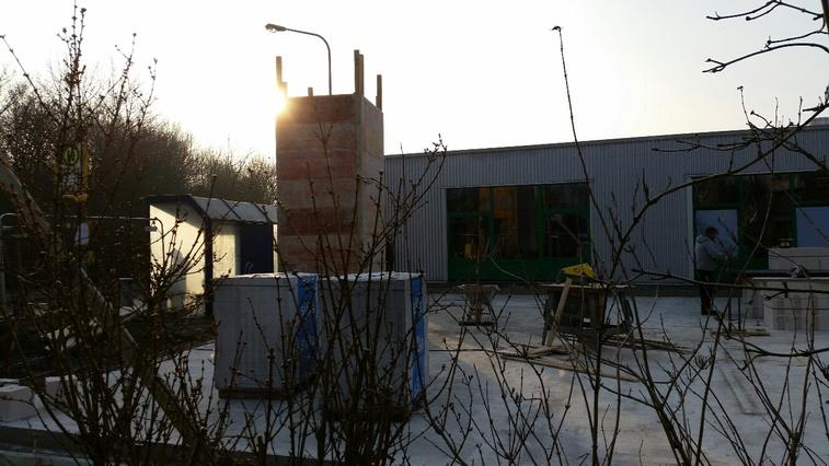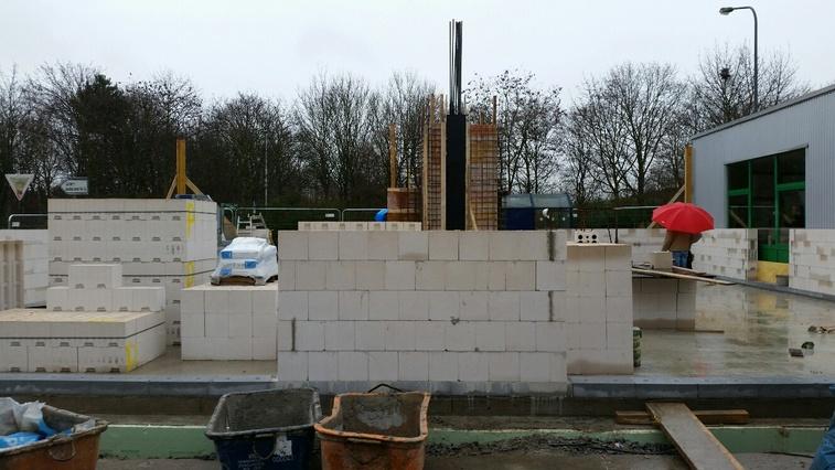 So schnell kann´s gehen: schon haben wir einen eigenen Turm (er wird zukünftig den Fahrstuhl beherbergen - schließlich sollen alle Mitglieder die erste Etage gut erreichen können). Nun warten mehrere Steinpaletten darauf, dass es mit den Mauerarbeiten los- bzw. weitergeht! Wir liegen übrigens auf den Tag genau im Zeitplan :-)