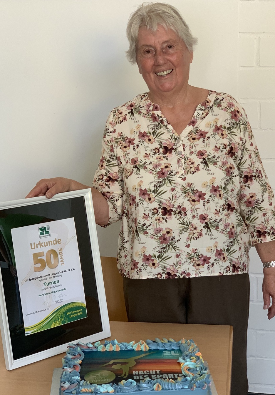 1969 folgte ihr Umzug nach Langenfeld. Bereits nach drei Jahren war sie dort maßgeblich an der Gründung der Sportfreunde Langenfeld (SFL), einem der beiden Vorgängervereine der SGL, beteiligt. Bei den Sportfreunden rief sie die Abteilungen Frauengymnastik, Kunst- und Leistungsturnen ins Leben und betätigte sich als deren Übungsleiterin. Auch an der Gründung der Leichtathletiksparte der SFL war sie beteiligt. Ihre besondere Leidenschaft galt jedoch immer dem Turnen – erst 2001 gab sie die Abteilungsleitung ab. Bis dahin hatte sie sich als Aktive, Trainerin und Kampfrichterin bei der SGL längst den Spitznamen Miss Turnen erarbeitet.