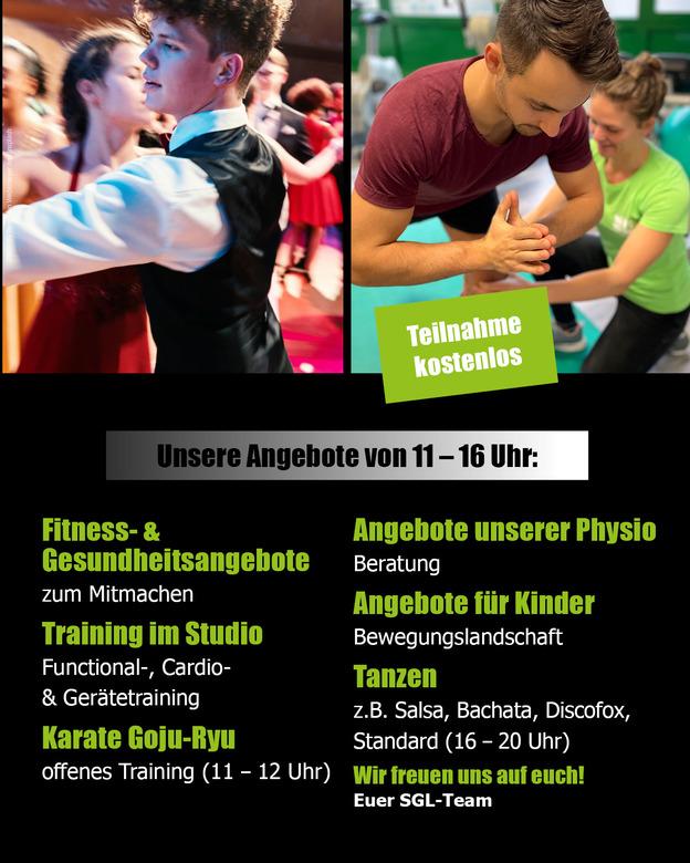 Ab 11 Uhr erwarten euch tolle Fitness- und Gesundheitsangebote zum Zuschauen oder Mitmachen.