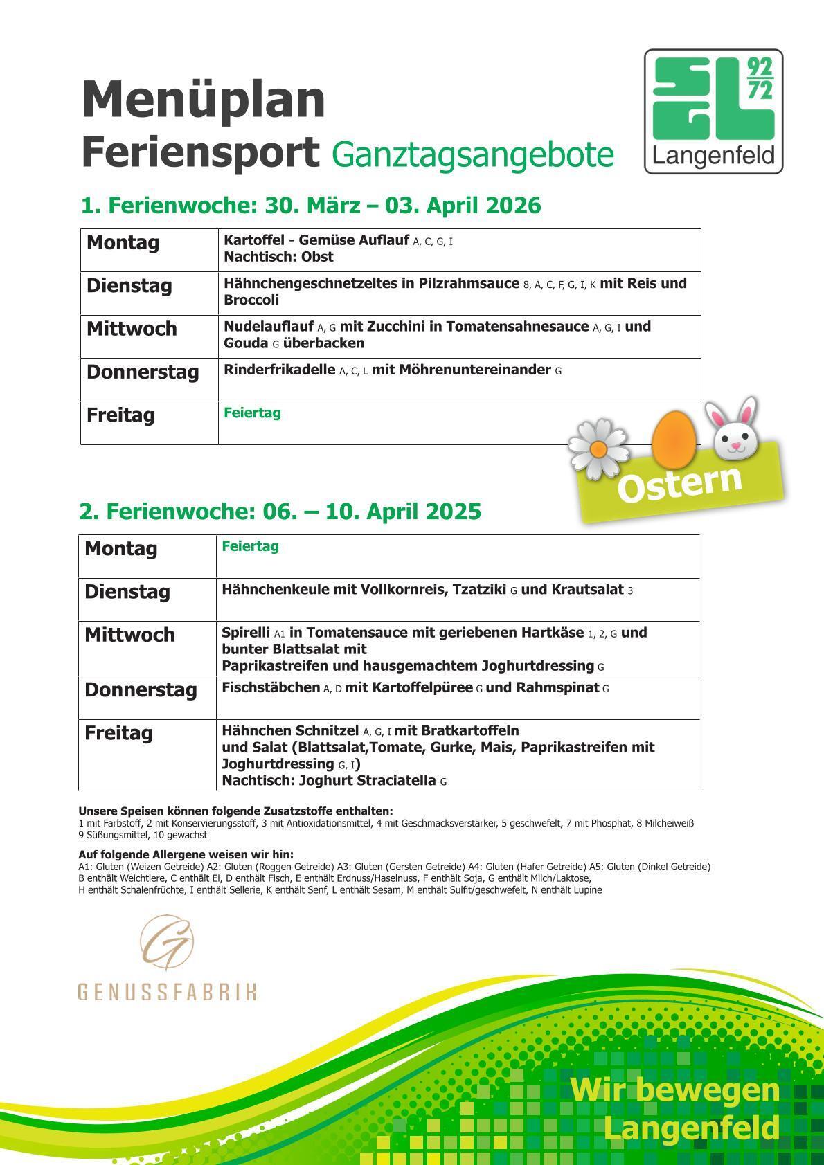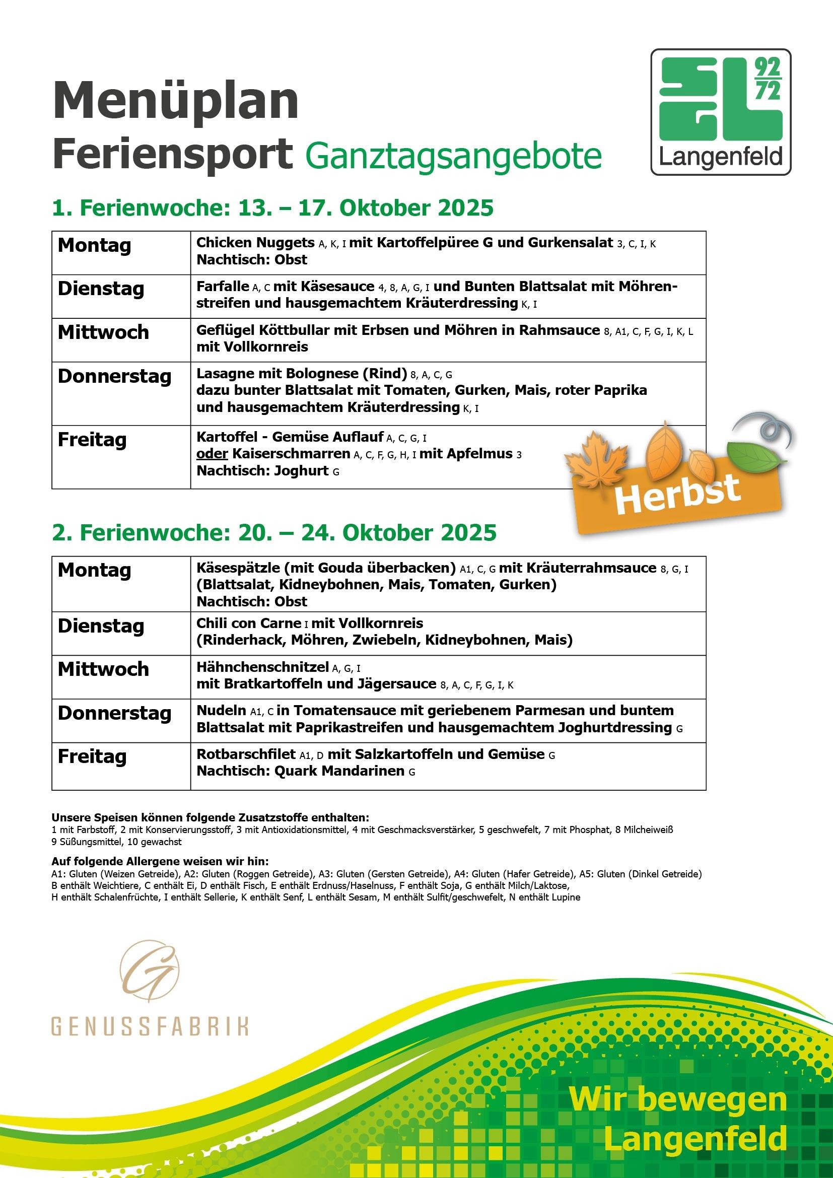 Das Menü für die Woche wird vor Ort verfügbar sein. Falls Falls dein Kind besondere Vorlieben oder Allergien hat, denkt bitte daran, ihm/ihr an entsprechenden Tagen ein eigenes Mittagessen mitzugeben.