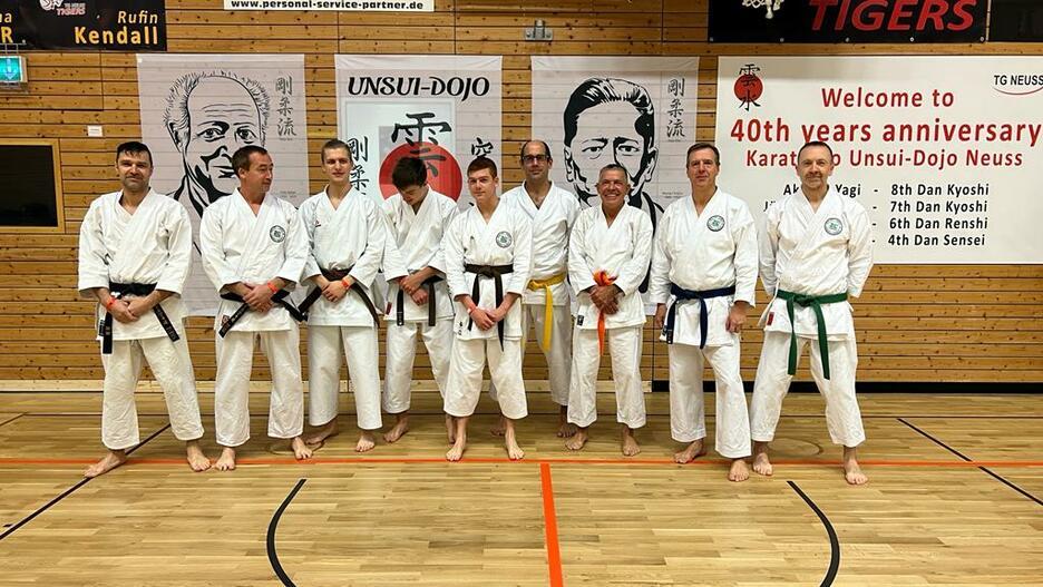 Auf dem Programm des Lehrgangs zum 40-jährigen Jubiläum des Unsui-Dojo in Neuss standen SV-Einheiten bei Jürgen Kestner, „Defend yourself using Karate“ mit Martin Kudzia sowie Grundschultechniken und Kata mit Großmeister Akihito Yogi aus Japan.