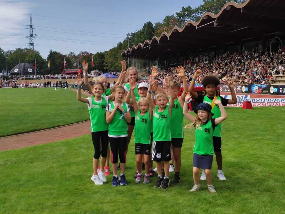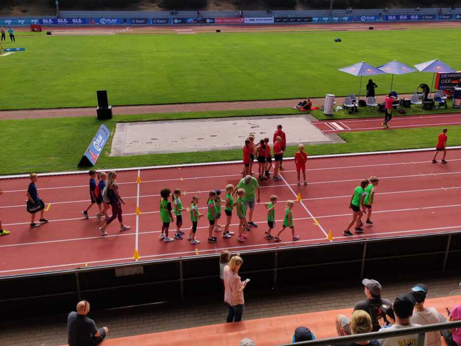 Was für ein Erlebnis für unsere kleinsten Leichtathleten der Sportgemeinschaft Langenfeld. Vor über 2.500 Zuschauern auf der gefüllten Tribüne am Leverkusen-Manforter Stadion wurden die U10/12 Athleten in einer 10x50m Pendelstaffel angefeuert. Ein absolutes Highlight zwischen Europameistern wie u.a. Mateusz Przybylko (Hochsprung Europameister 2018 mit 2,35m Bestleistung), Konstanze Klosterhalfen (5.000m Europameisterin 2022) und einem Yohan Blake (dem zweitschnellsten Sprinter aller Zeiten 9,69sek) auf der Tartanbahn stehen zu dürfen.